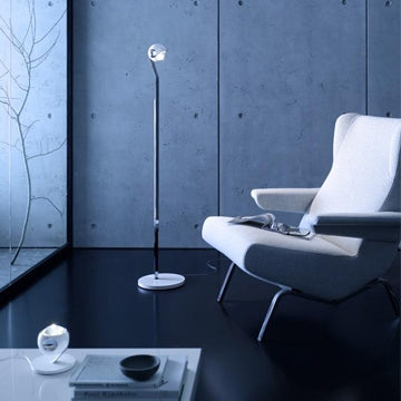 io gulvlampen er fantastisk, speciel grundet sin funktionalitet med dens lys der kan peger i alle retninger og give et kraftigt men blændfrit lys.