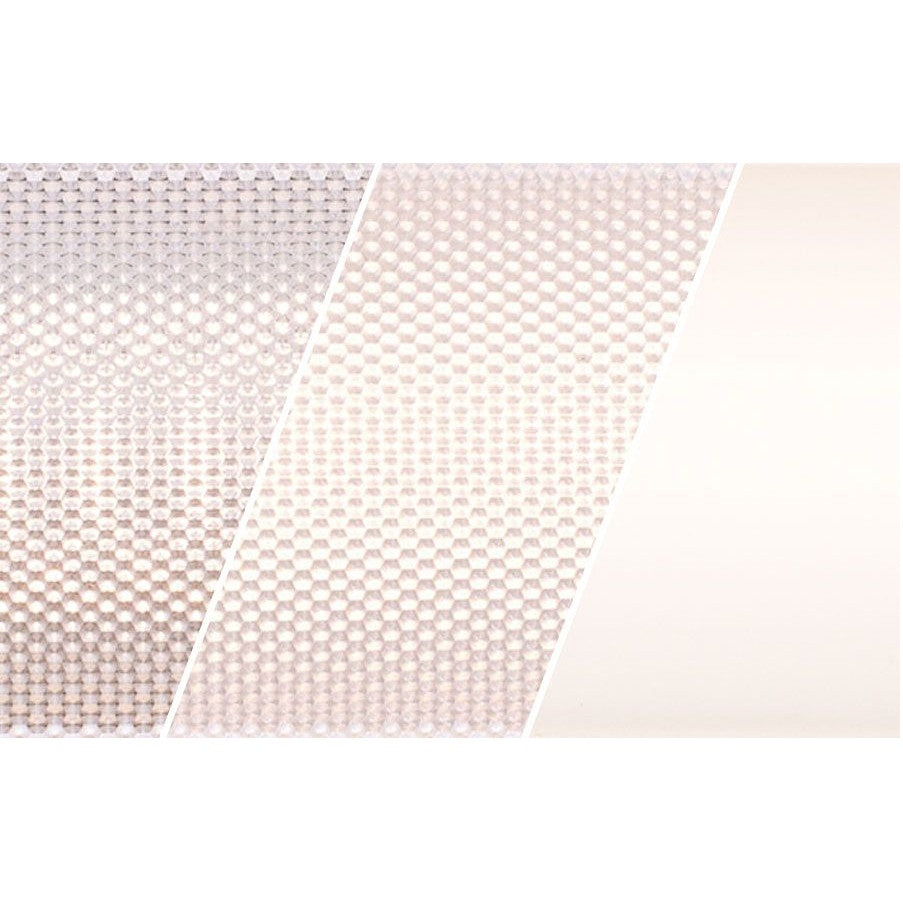- Soft-prism front som er mat på den ene side, den stjæler ca 10% af lyset. den har en URG på 19% som sikre en høj komfort som eliminere refleksion på en computerskærm, som også sikre minimal blænding.