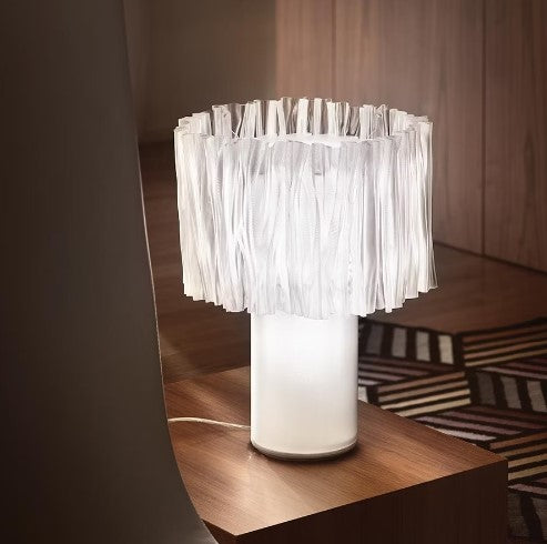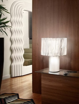 Bordlampen består af cristalflex/polycarbonat, som er bukket i bølger.