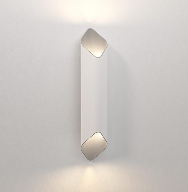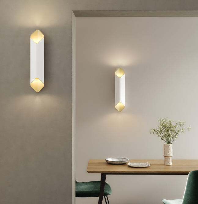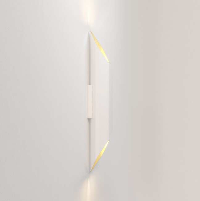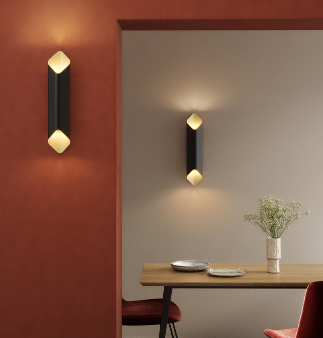 Lampens opaliserende polycarbonat-diffusor, kaster en blød vask af belysning på væggen uden barske vinkler.
