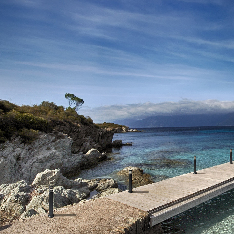 En pullert med alm. E27 fatning så du kan frit vælge og skifte den pære som har den farve du ønsker.