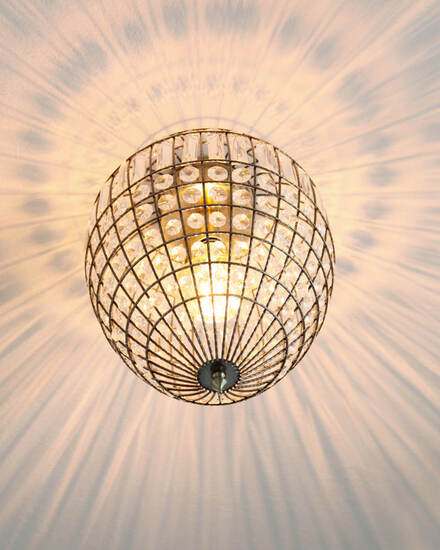 Amadeus loftlampe er en dekorativ loftlampe med glasprismer som sidder i antik messing stel.
