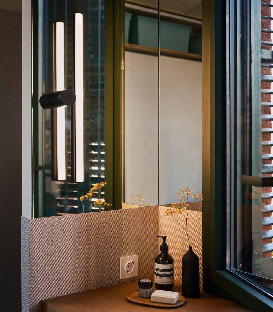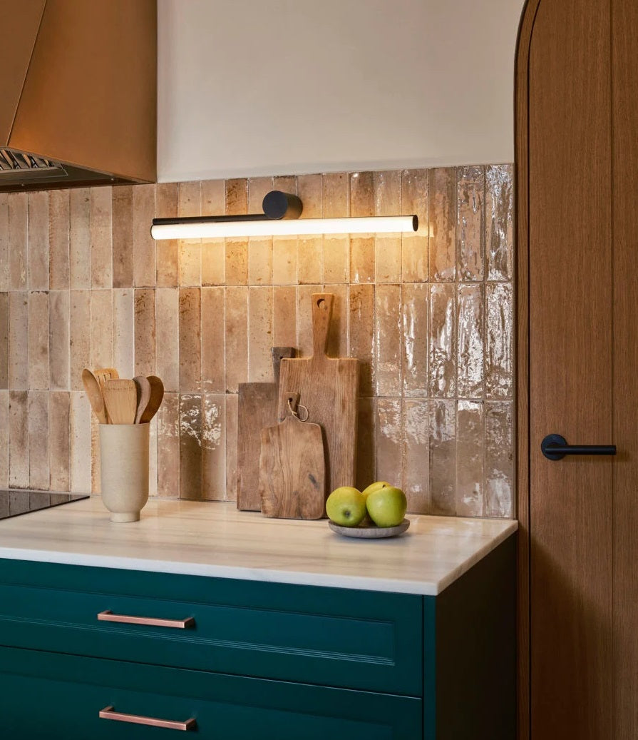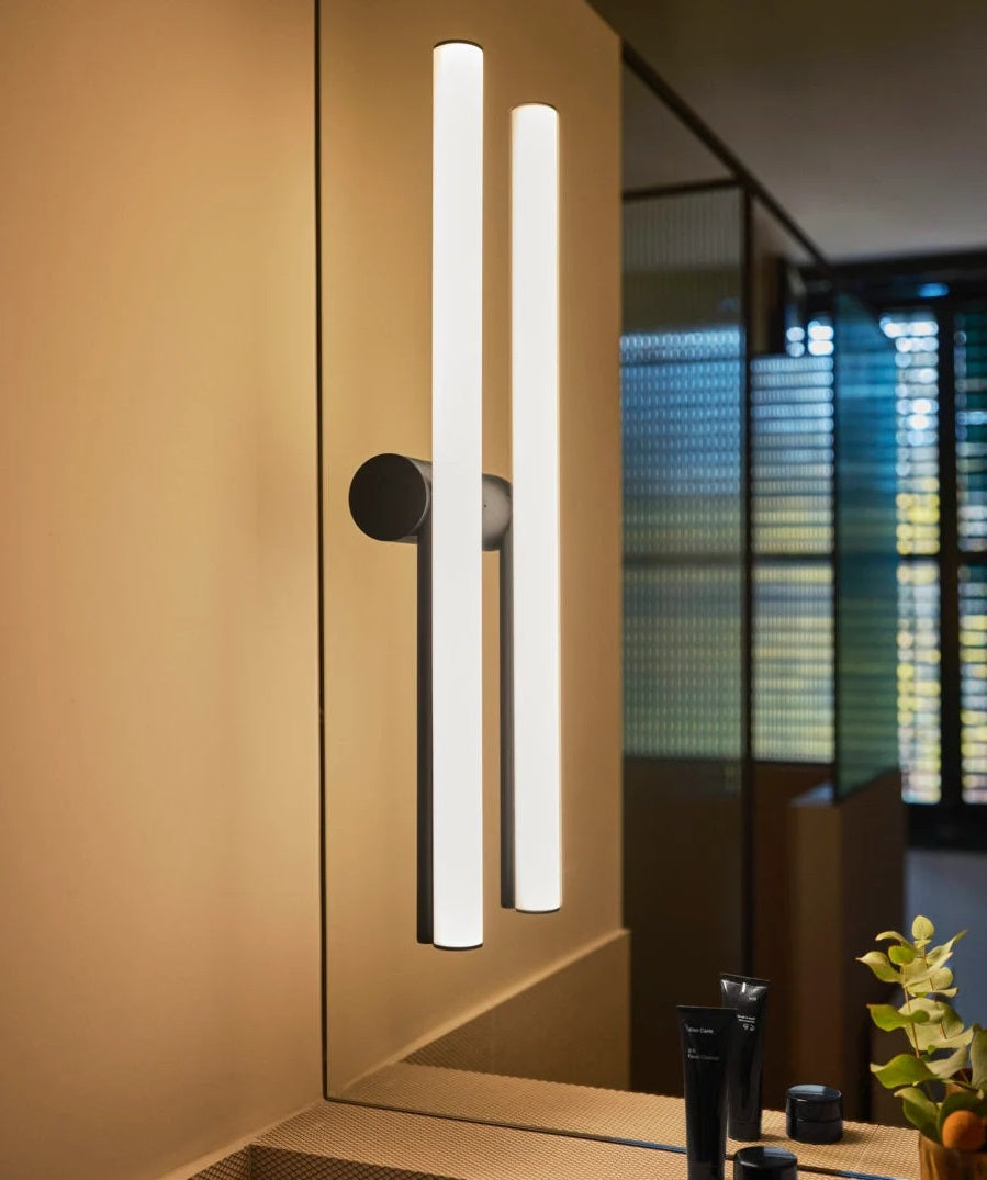 Pendlens lineære, unikke design og næsten flade segment af lys, blev gjort modulært og asymmetrisk for at skabe et blødt og overraskende belysningssystem.