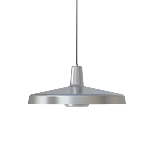 Arigato fås i farverne: mat hvid, mat sort eller mat aluminium og indersiden på lampehovedet er hvide for det reflekterer lyset bedst På alu udgaven er den alufarve som giver et flot glød.
