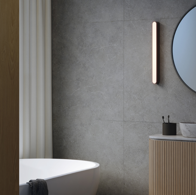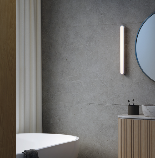 Væglampens alsidige design kan både installeres vandret og lodret, og kan derudover brudes ovenpå badeværelsesspejlet, eller én på hver side.