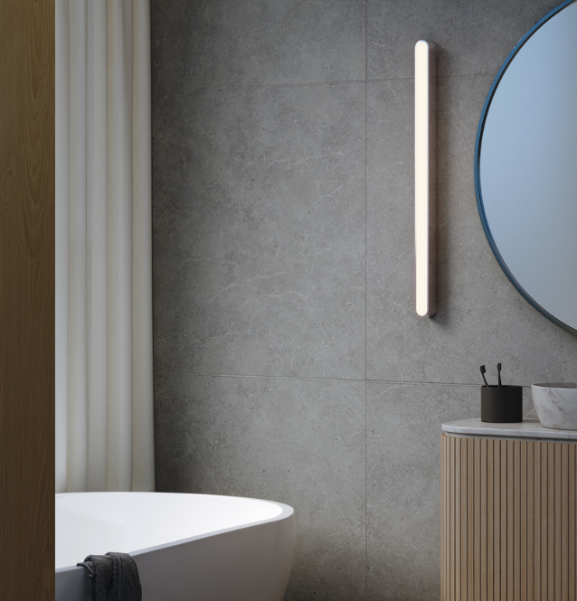 Det slanke design giver udtryk for et enkelt blyantstrøg gengivet i 3D, og tilføjer derfor et moderne look til specifikt badeværelser.