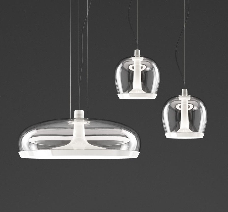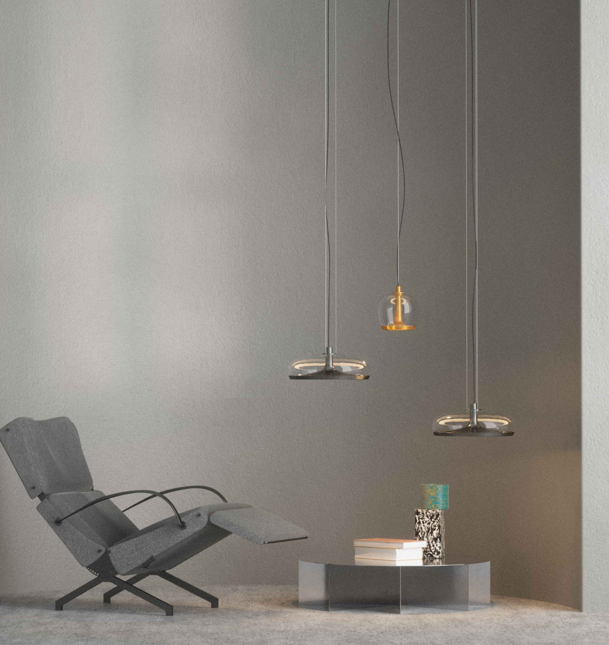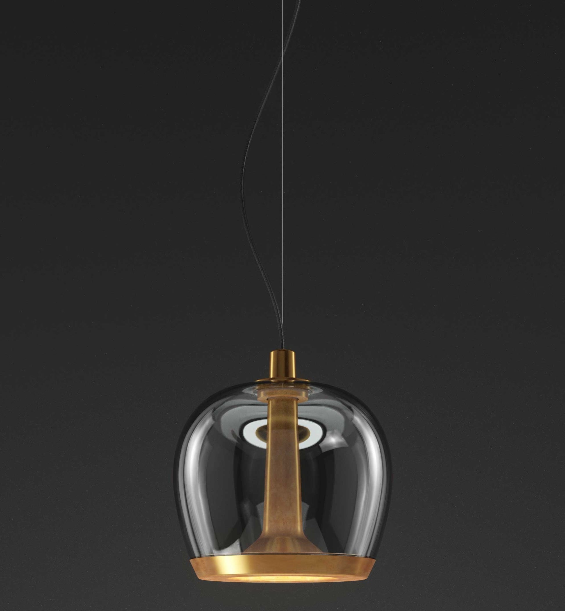 Designeren Patrick Jouin har designet denne pendel, der er lavet af spundet metal og mundblæst glas.