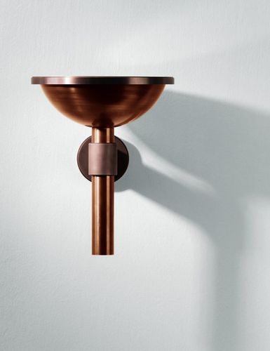 Lampe i kobber til påbyg med håndblæst mat hvidt glas.