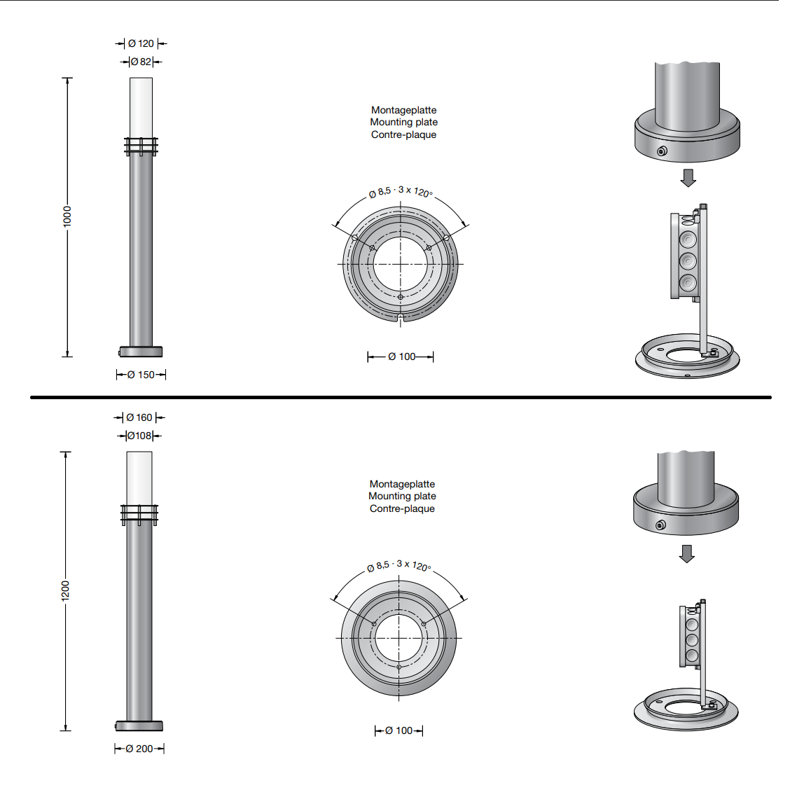 2) Dimention: Ø 16 cm, Højde 120 cm, fod diameter 20 cm, TC rør 26 watt eller 19,3W integret LED 3000K, 1101 Lm