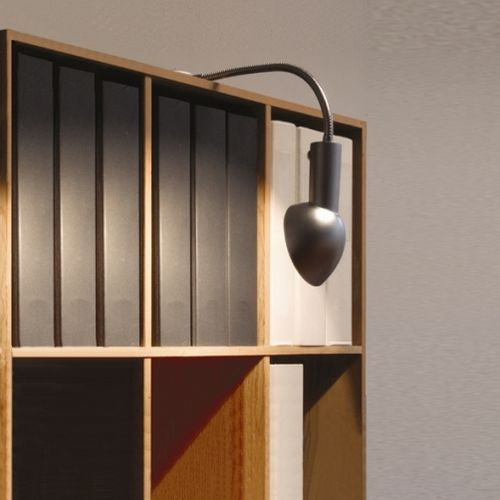 Lille og smuk asymmetrisk lysende lampe til belysning af tavle og malerier eller reoler.