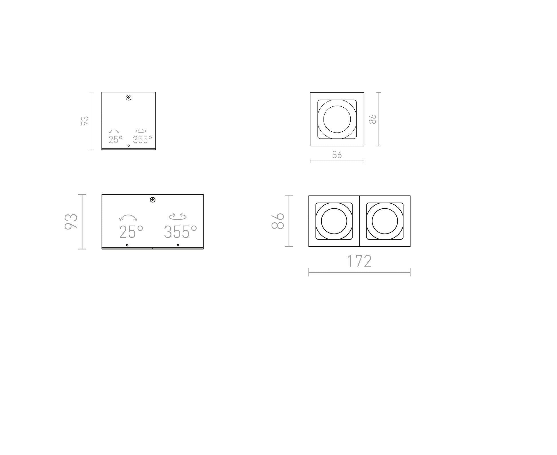 Berit II: Højde 9,3 cm, Bredde x 8,6 cm, Længde 17,2 cm, GU10 2 x 35W