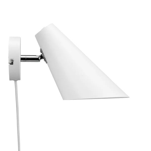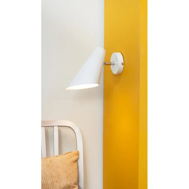 Lampen fås i mat sort metal og hvidt metal. Lampens hoved kan drejes efter behov.