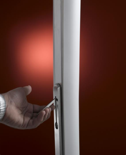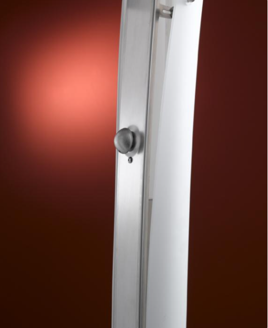 En utraditionel slank gulvlampe i opal hvidt Murano glas med nikkel fod.