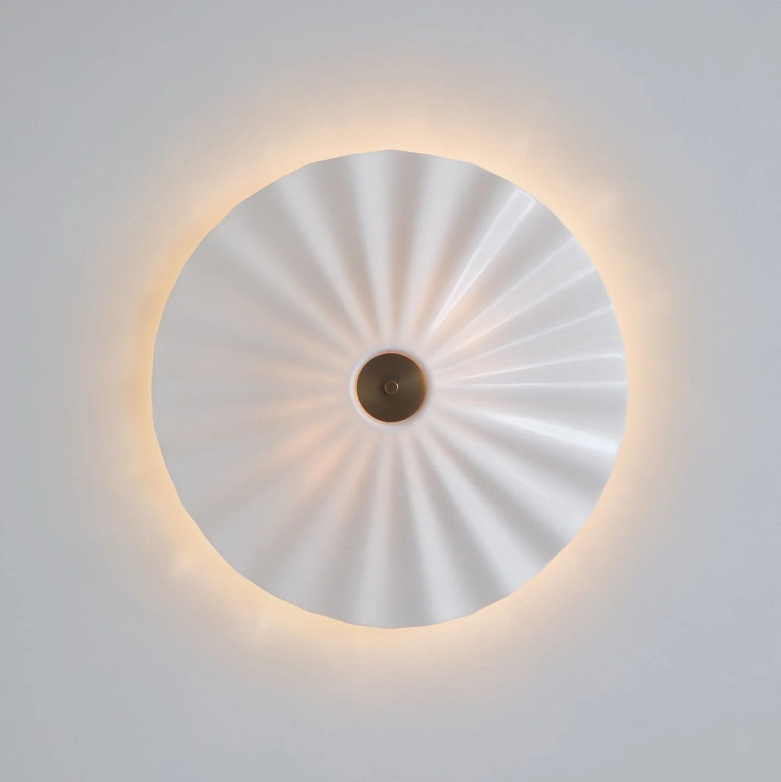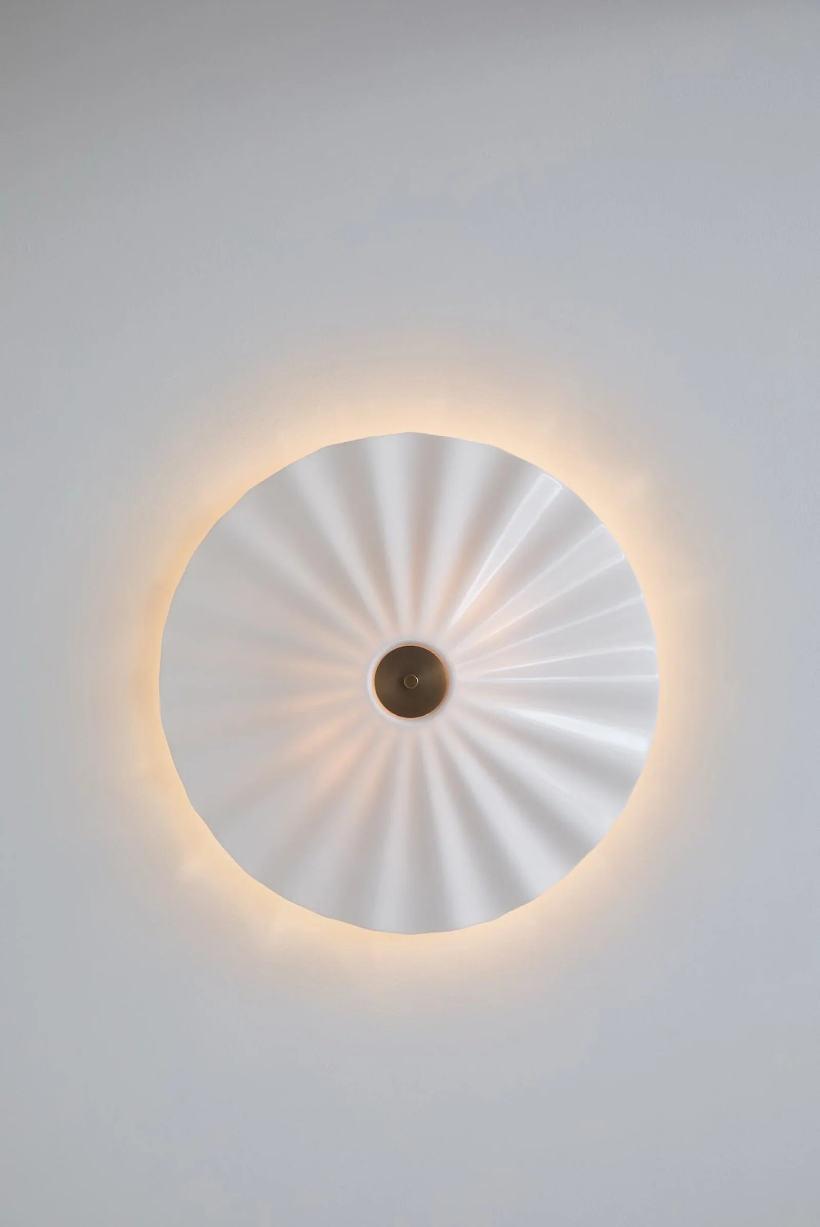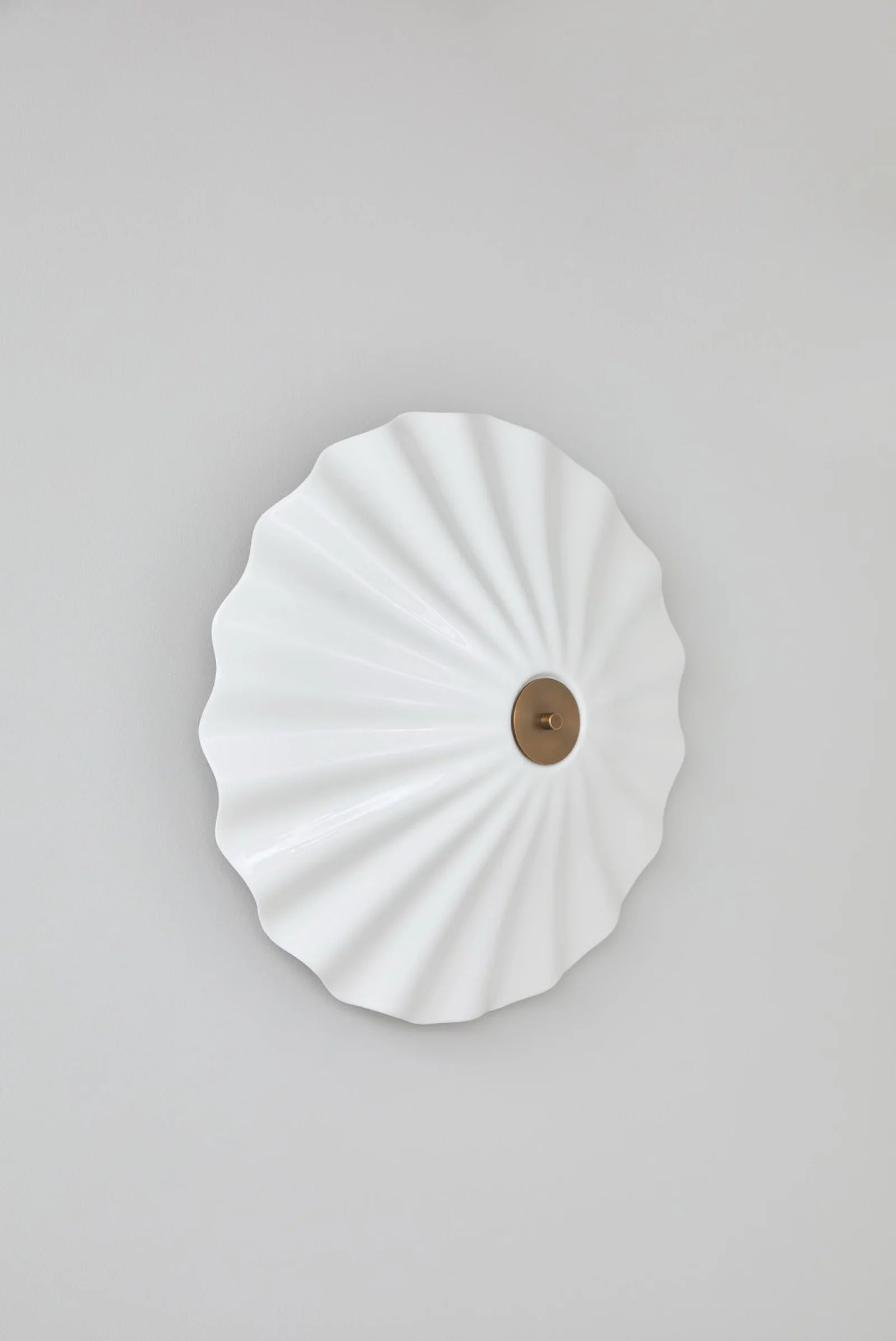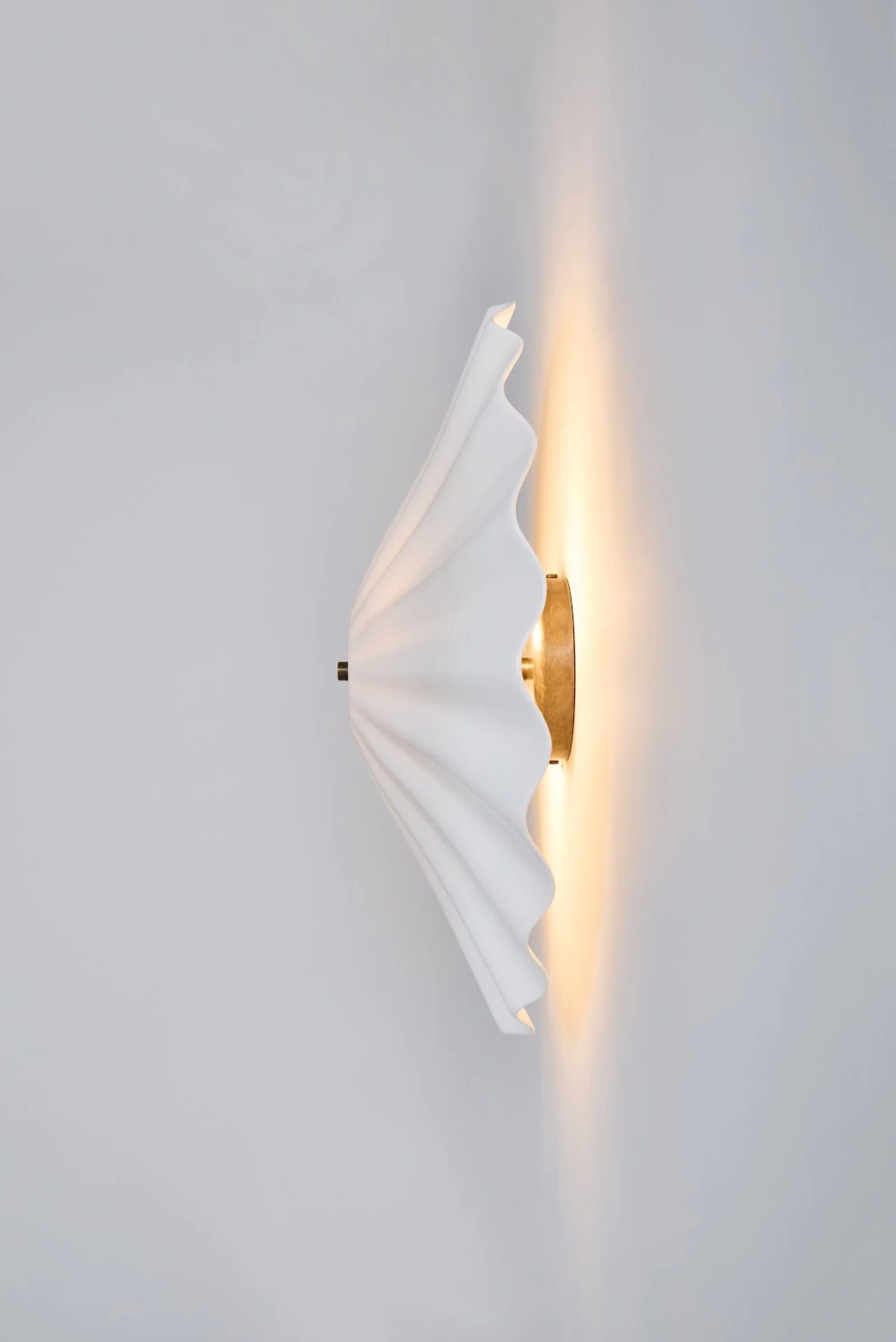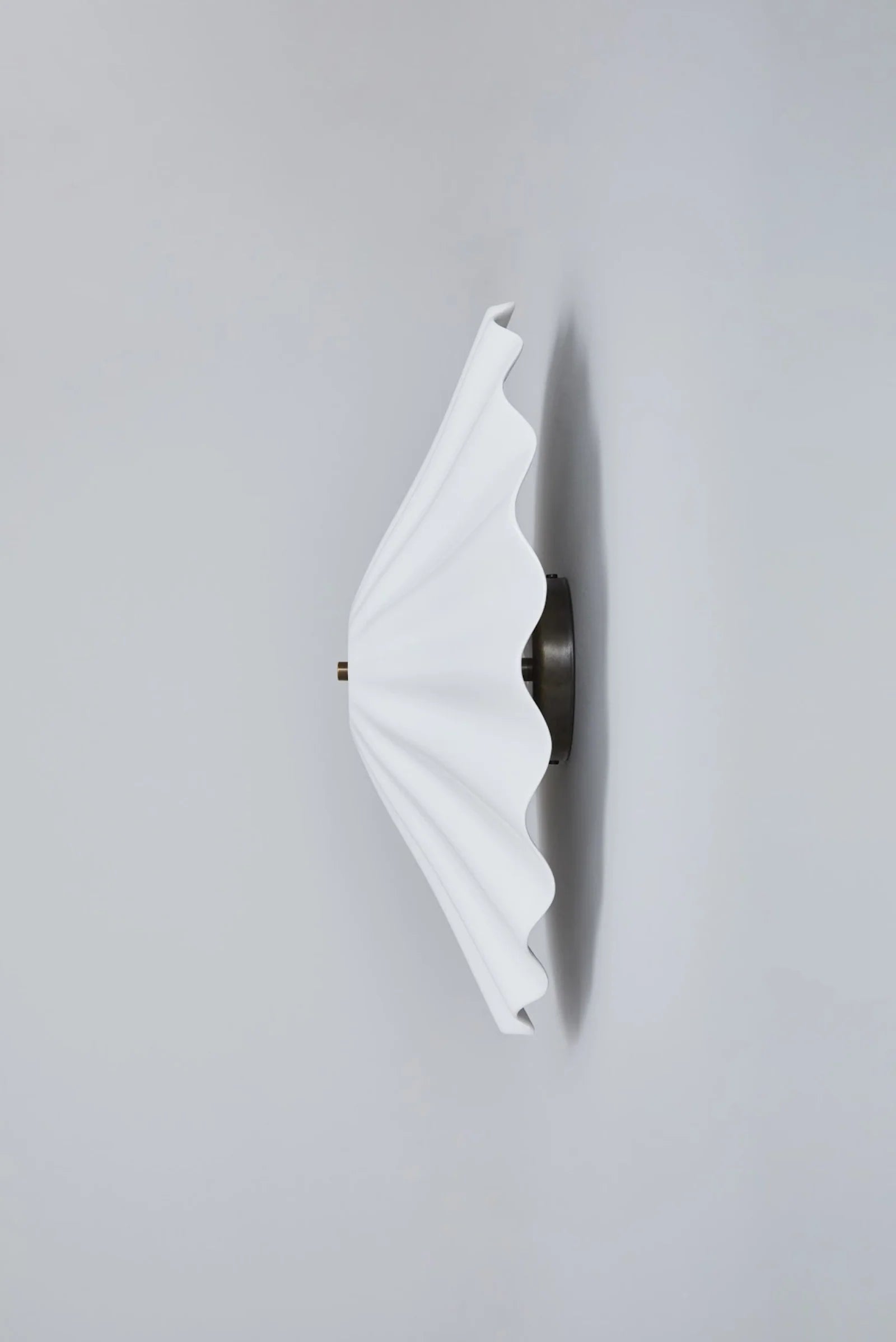 En væglampe som har en bølgende overflade i det fine engelske håndlavet porcelæn.