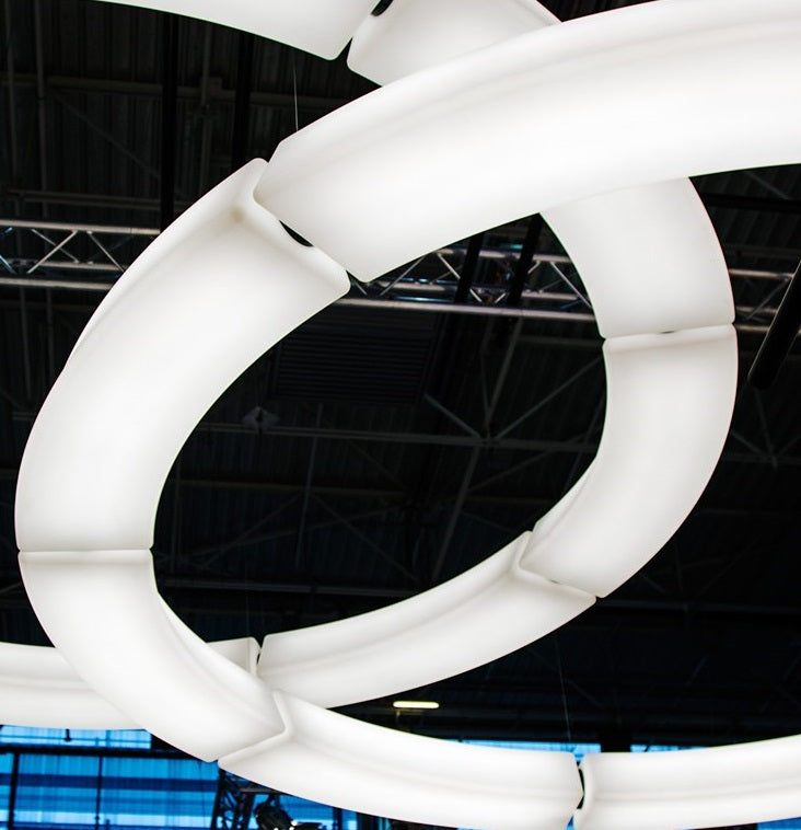 Circular Pol XXL pendlen er af aluminium og polyethylen, og er i farven hvid.