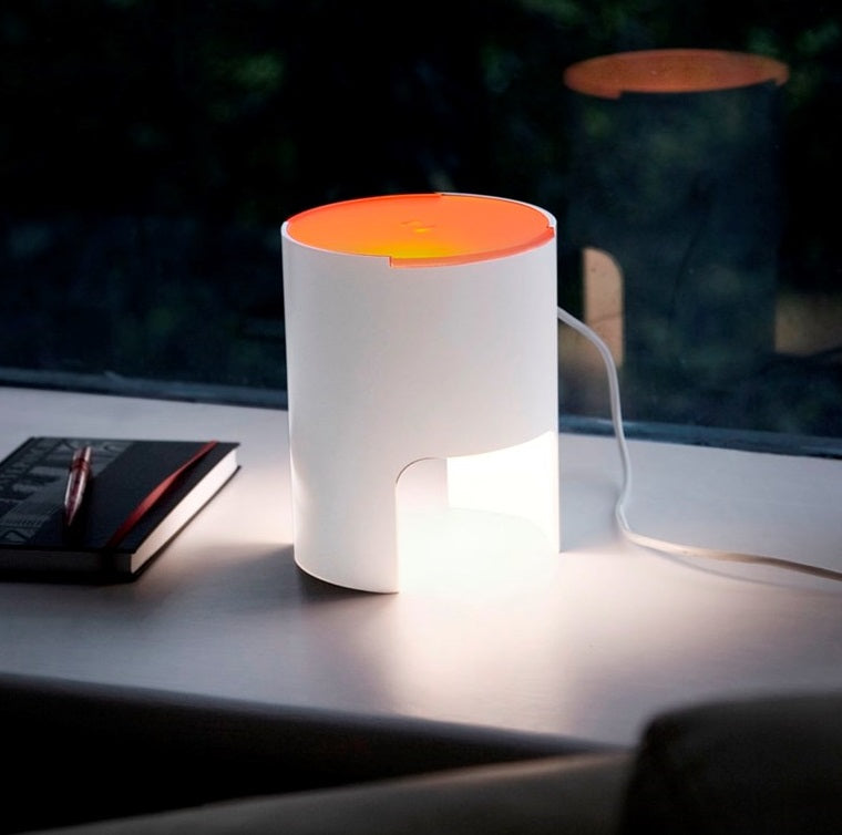 Lampen har et indirekte lys, og er af lakeret aluminium og satin-finish methacrylat.