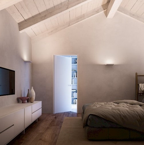 Væglampen indeholder meget fladt elektronik, der styrer et LED-kort med 1700 eller 3400lm strøm.