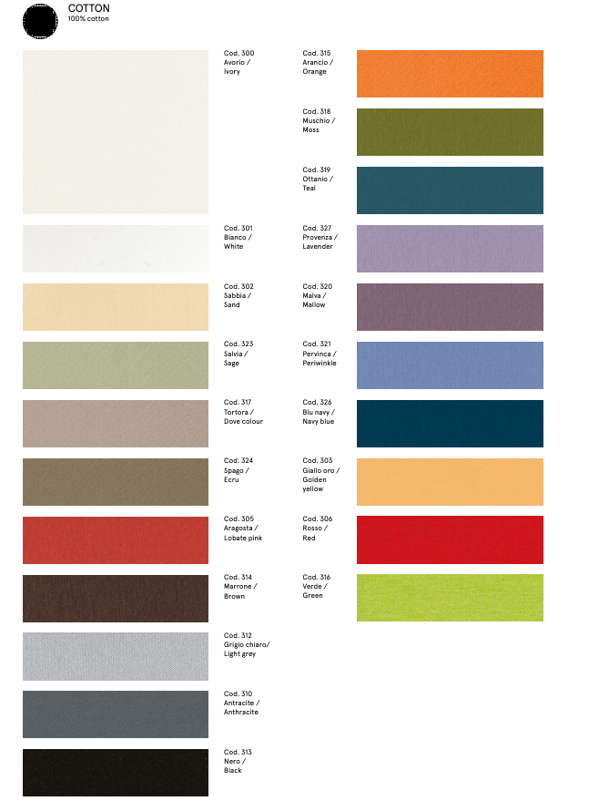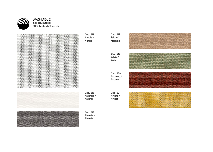 Standard skærm farver er i bomuld i hvid og sort og washable i marbel.