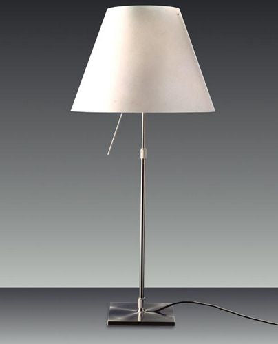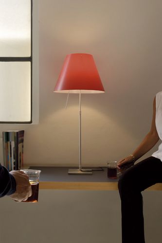 Costanza bordlampe D13 får med mange forskellige farver i skærme og med et stel i alu, sort og knækket hvid. Den leveres med en teleskoparm.