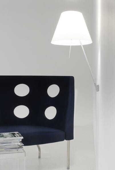 Costanza væglampe D13 a.i.f. fås med mange forskellige farver i skærme og med et stel i aluminium. Den leveres med fast arm og tænd/sluk funktion.