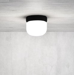 Delux Junior loftlampen er af lakeret aluminium og mundblæst opalhvidt glas diffuser.