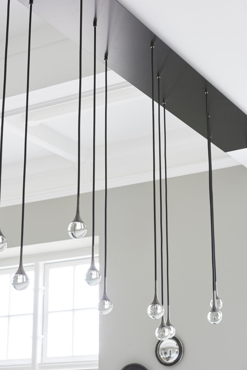 Dewdrop leveres med driver for enden af de fire meter ledning til hver enkelt pendel, men der kan godt fås drivere som kan trække flere pendler på en driver.