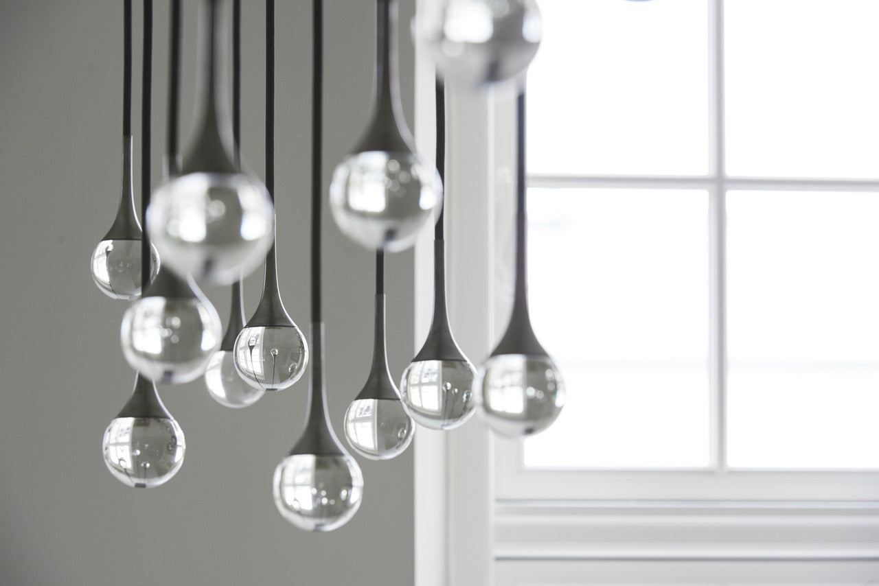 Drewdrop pendlen består af en massiv klar krystal kugle, som meget få kan producerer på grund af sværdheden i at kunne køle et massivt glas ned og samtidig opnå den perfekte form.