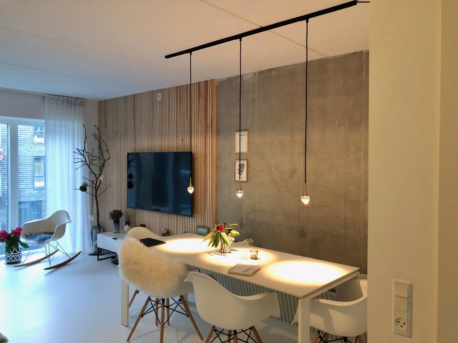Der er også lavet speciel montering rosetter til forskellige projekter, som en lang skinne eller en rund loft plade til at hænge pendeler ned igennem en trappeopgang. så har du speciellle ønsker så kan det godt tilpasses lige din udfordring.