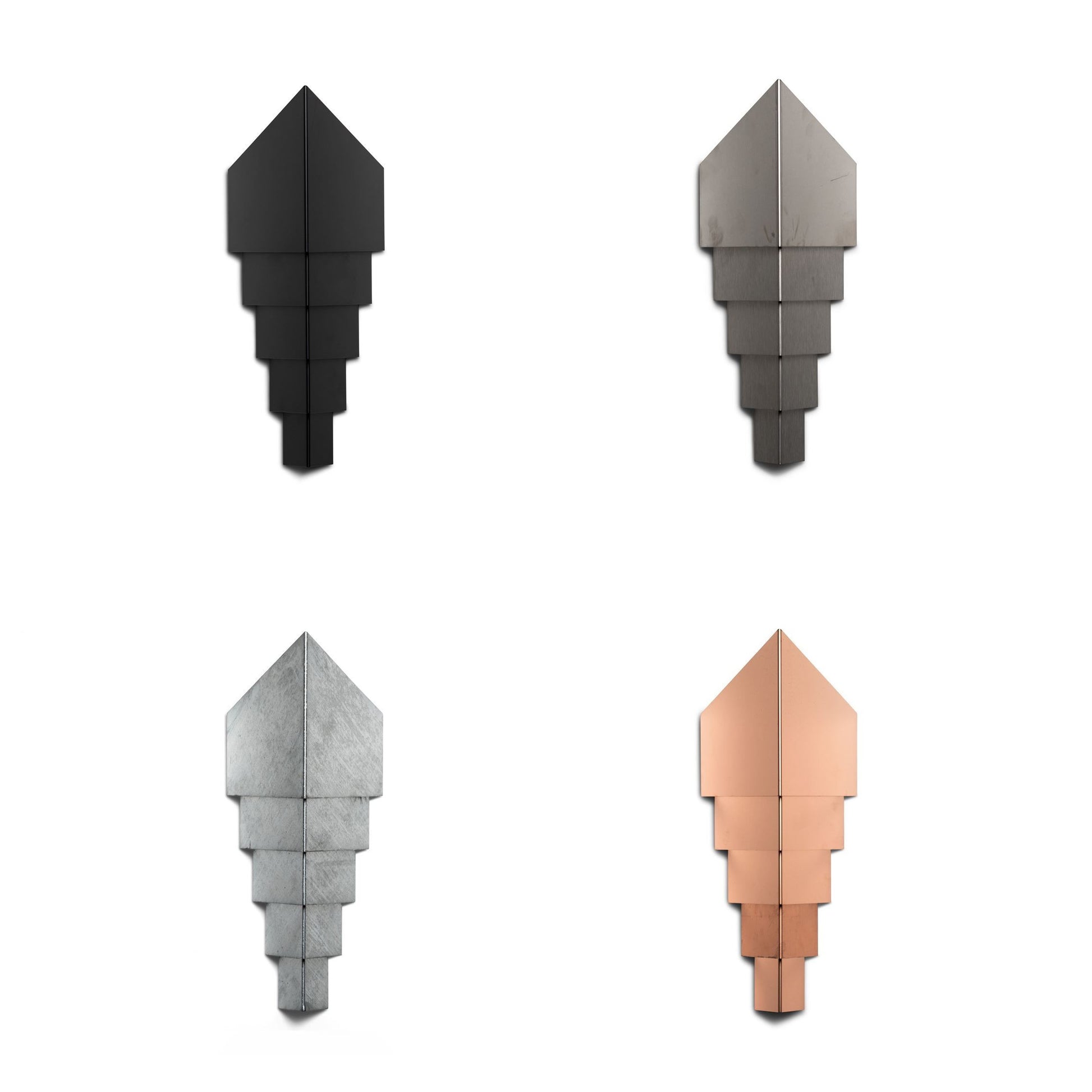 Fås i forskellige overflade behandlinger: Rust - rustfrit stål - zink - kobber - grøn kobber - sort