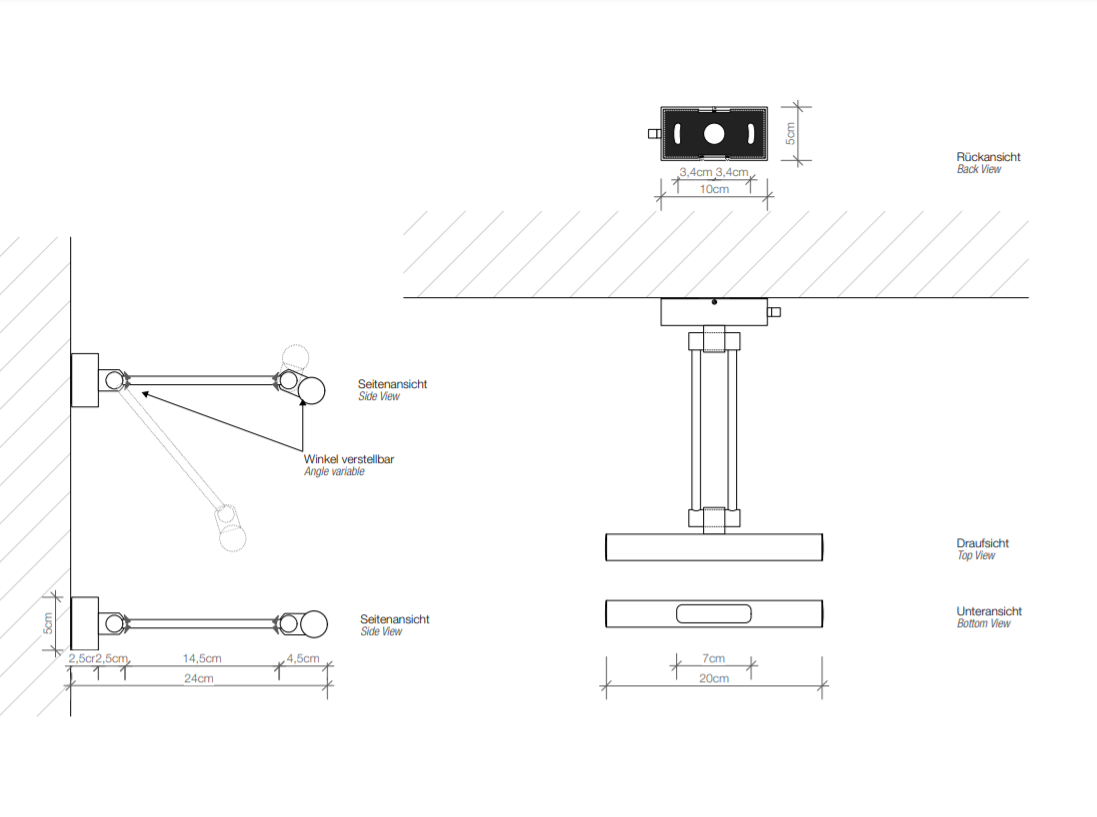 Dim 20 malerilampe fra Decor Walther er en høj kvalitets lampe med en G9 pære med diffust lys og kan bruges til et maleri og spejl belysnings væglampe, som bruger en halogenpære som gengiver 100% af alle farver så billedernes farver ser ægte ud.