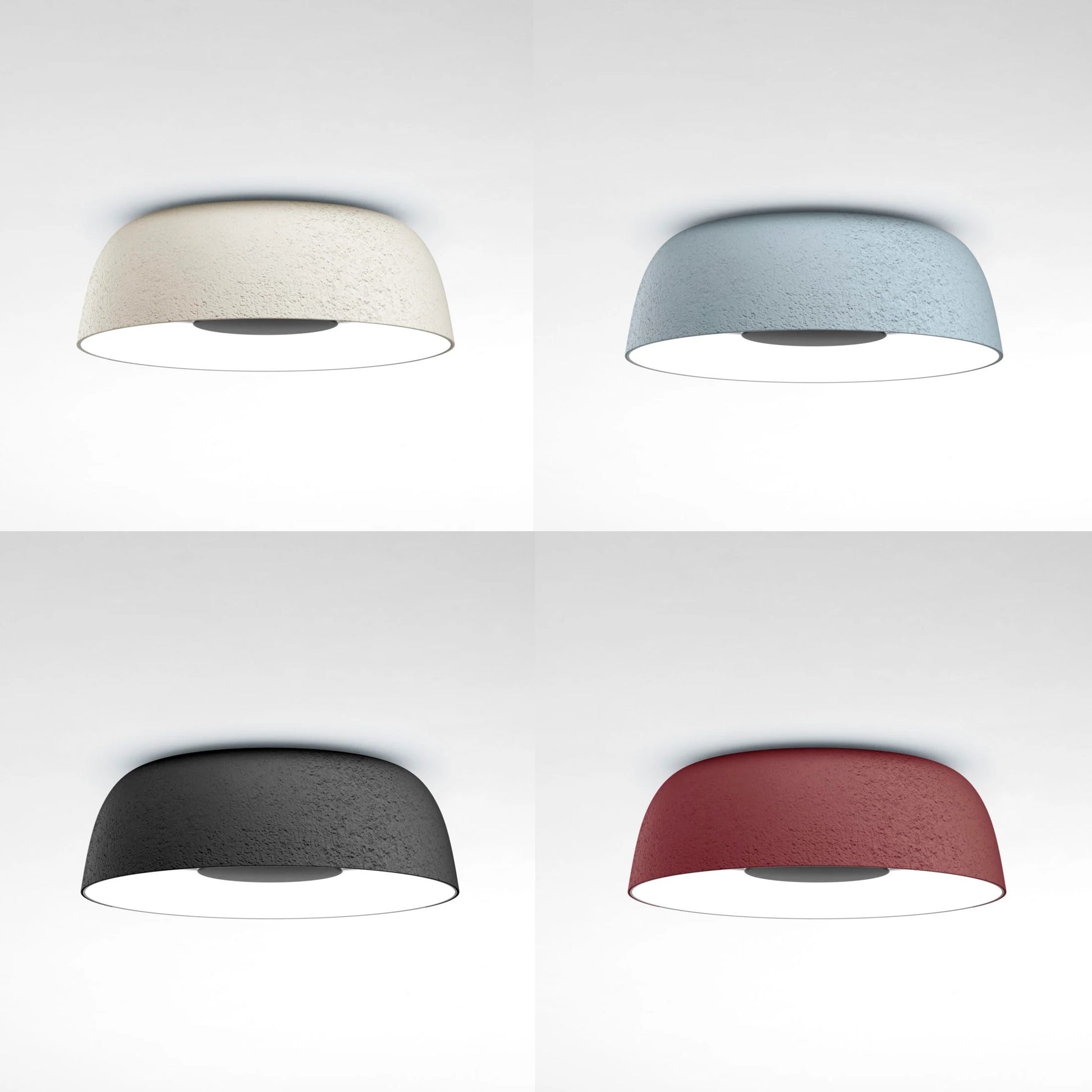 Ydersiden af loftlampen minder om teksturen fra sten, og indersiden er glat, hvilket er perfekt til reflektion af lys.