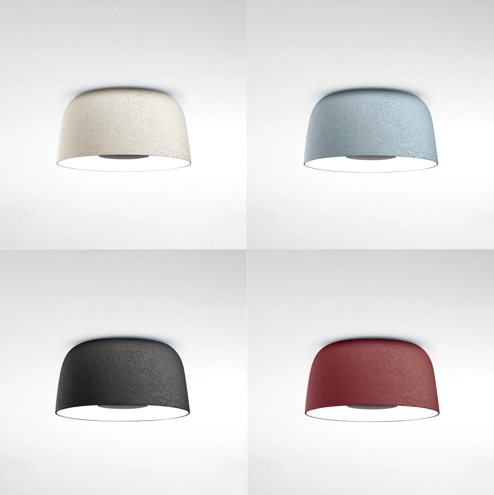 Ydersiden af loftlampen minder om teksturen fra sten, og indersiden er glat, hvilket er perfekt til reflektion af lys.