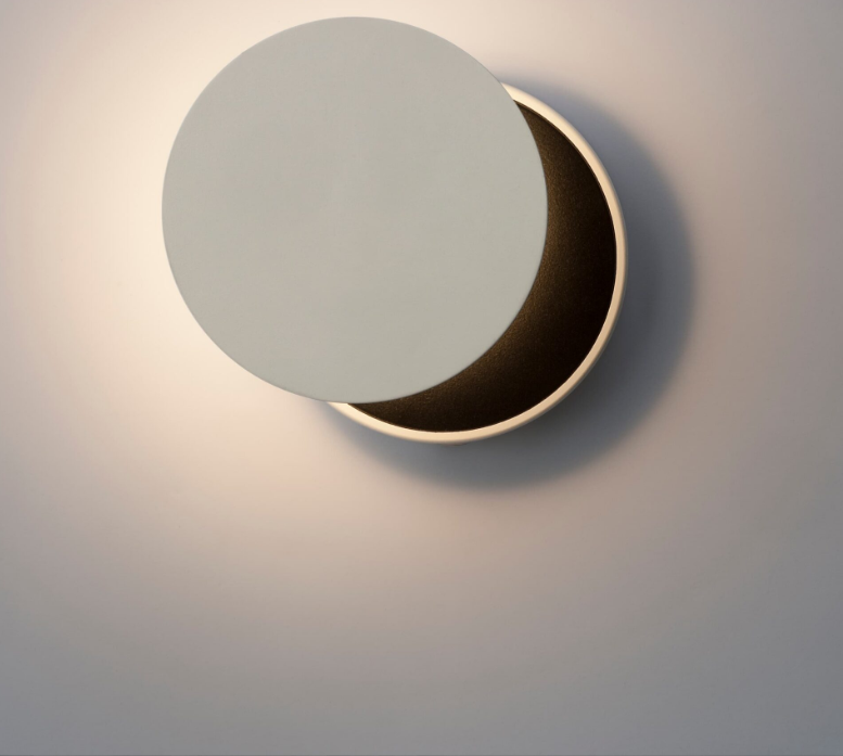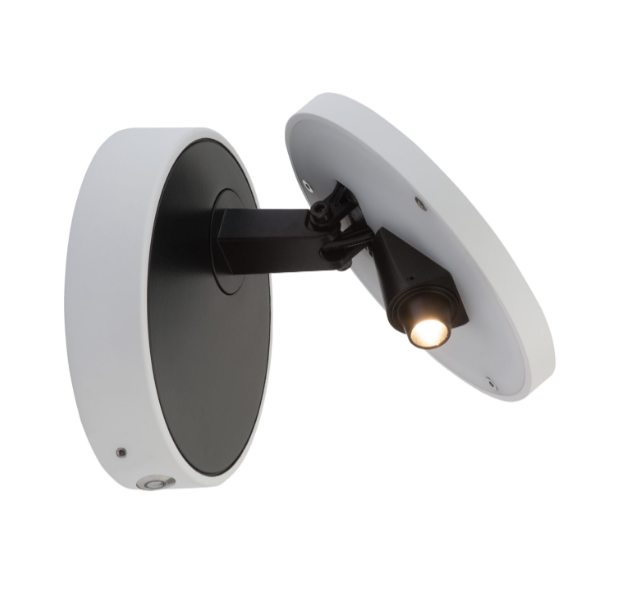 Dot væglampen fås enten i hvid, hvid/sort eller i sort, og lampen har en tænd/sluk knap på basen.