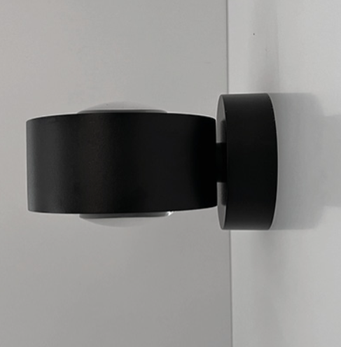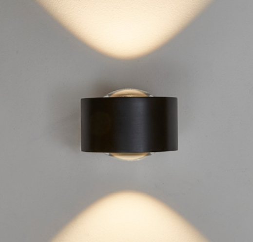 Denne elegante sorte Easy Lens Wall har en linse i toppen og bunden, som gør at lyset fra lampen bliver dannet til en flot bue af lys foroven og forneden.