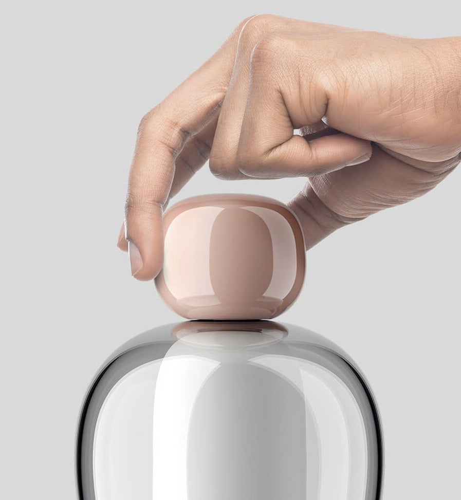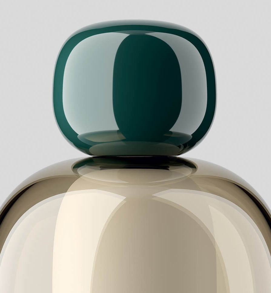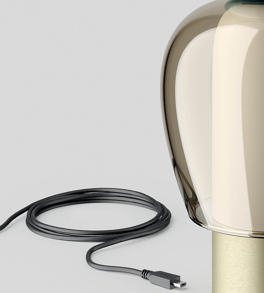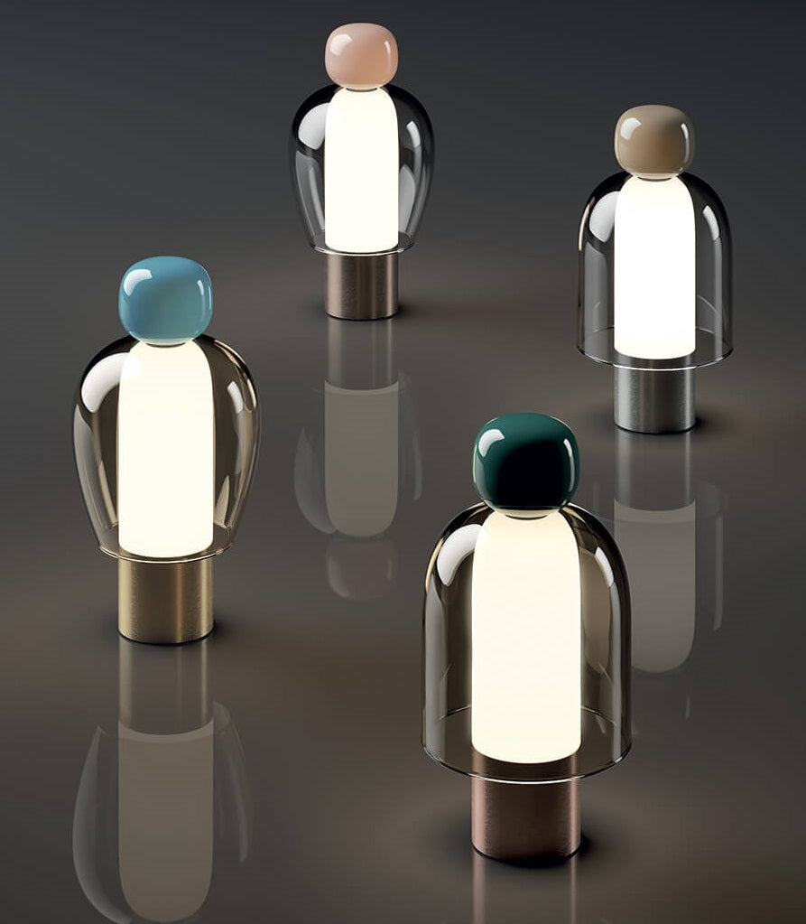 Formen på bordlampen minder om klokker, hvilket består af en krop og en knop foroven, der giver en stærk personlighed og en skulpturel linje til lampen.