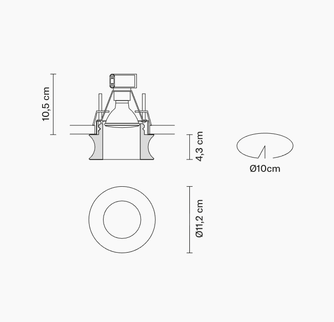 Eli downlight er en semi-sænket downlight/spot i et moderne og kurvet design, som enten kan bruges med halogen eller LED