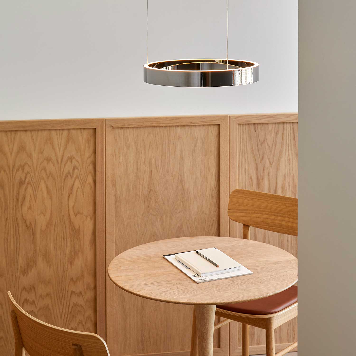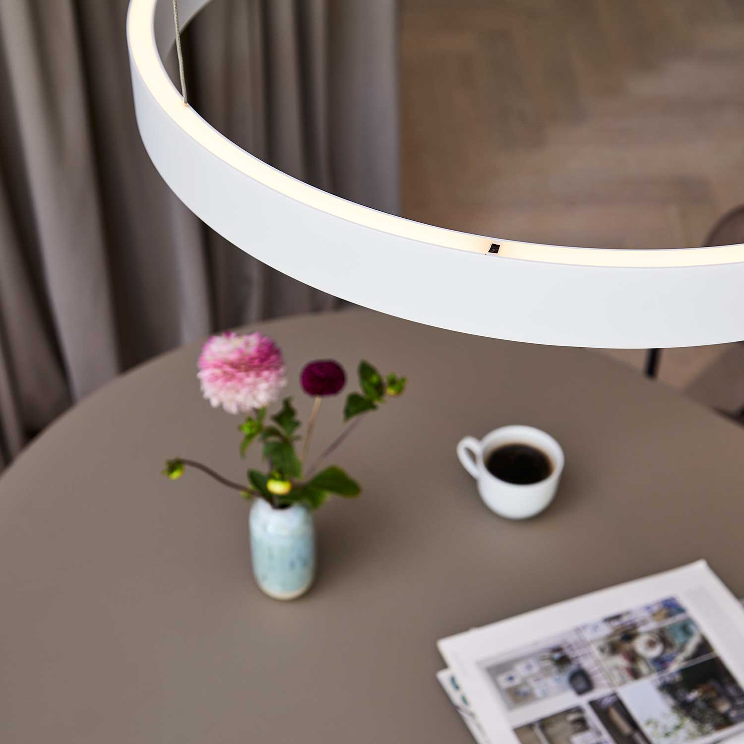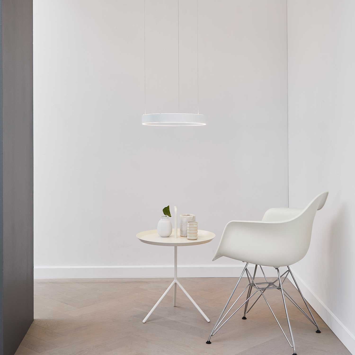 Eos 360 er en moderne og minimalistisk pendel, der passer perfekt over et spisebord, inde på et kontor eller andet lignende.
