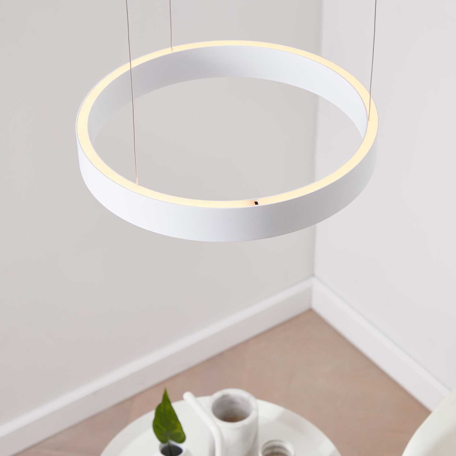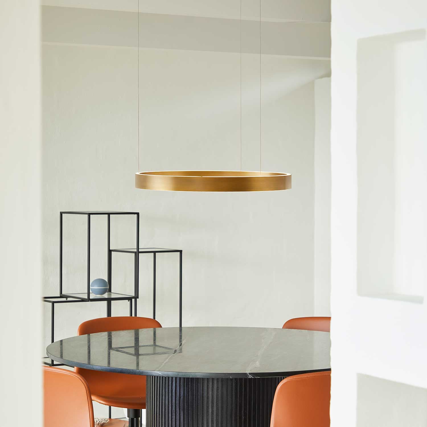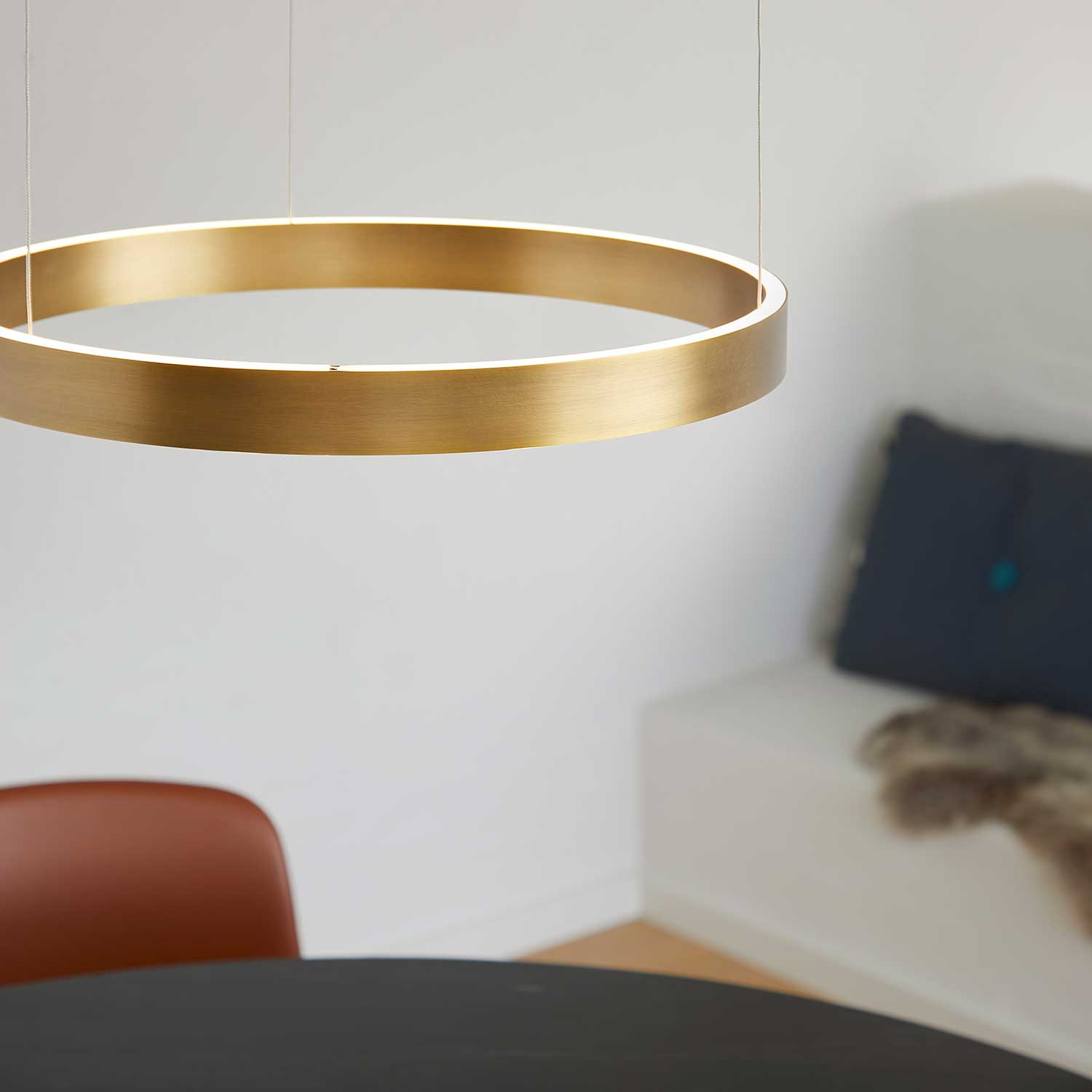Eos 360 er en moderne og minimalistisk pendel, der passer perfekt over et spisebord, inde på et kontor eller andet lignende.