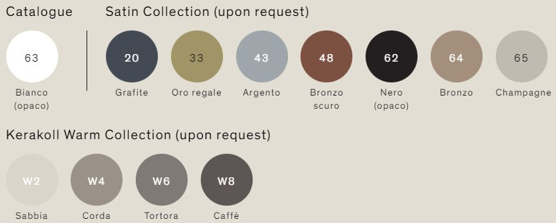 Farve(r): Satin hvid, grafit, guld royal, aluminium, mørk bronze, mat sort, bronze, champagne, sand, mat beige, duegrå eller kaffebrun