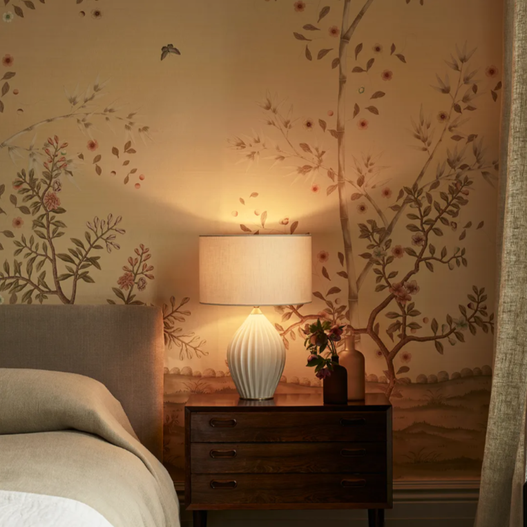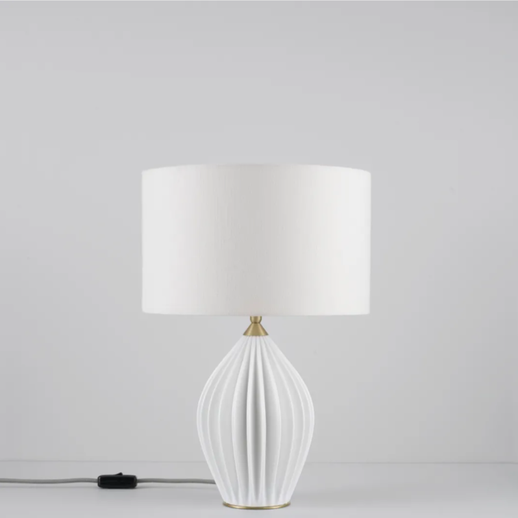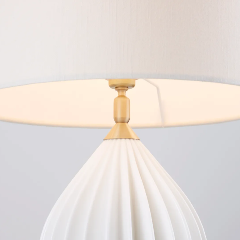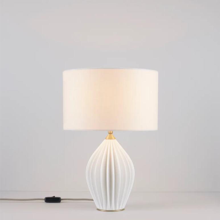 Fin queen bordlampen har en smuk engelsk håndlavet porcelæns fod og en klassisk hvid bomuld skærm.