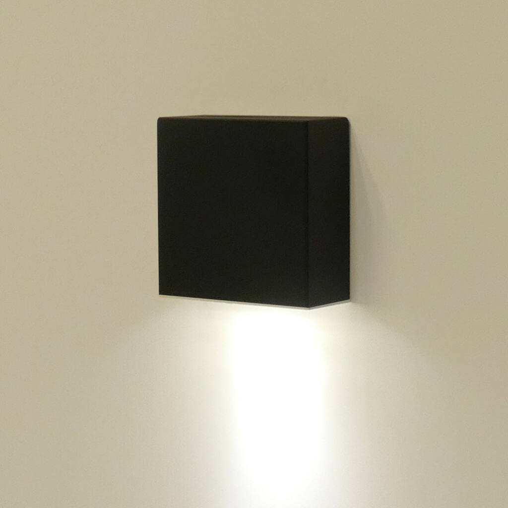 Opbygning: Kvadratisk fladt armatur med nedadgående lysvinkel.