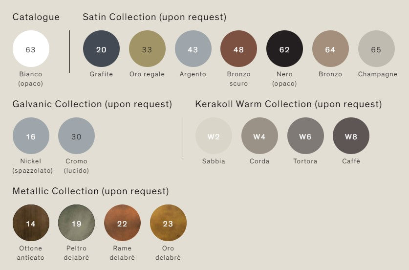Farve(r): Satin hvid, grafit, guld royal, aluminium, mørk bronze, mat sort, bronze, champagne, sand, mat beige, duegrå, kaffebrun, børstet nikkel, krom, antik messing, krøllet grafit, krøllet kobber eller krøllet guld