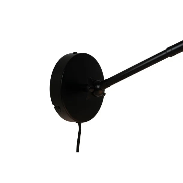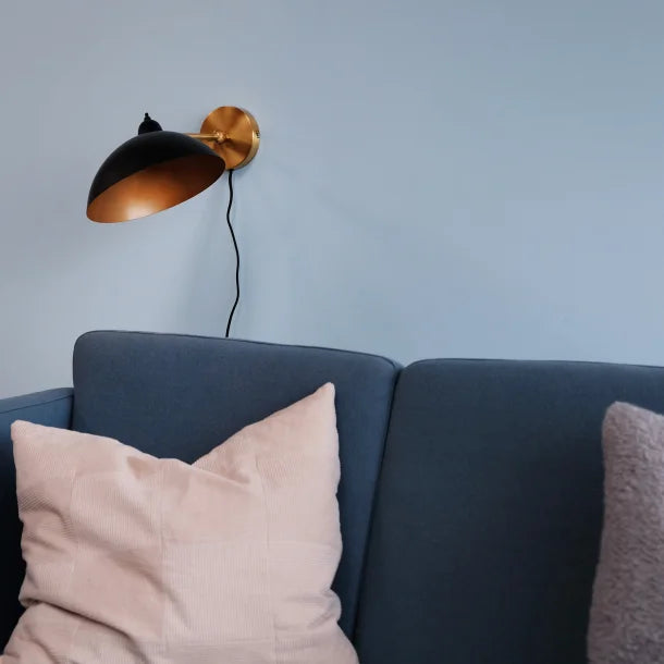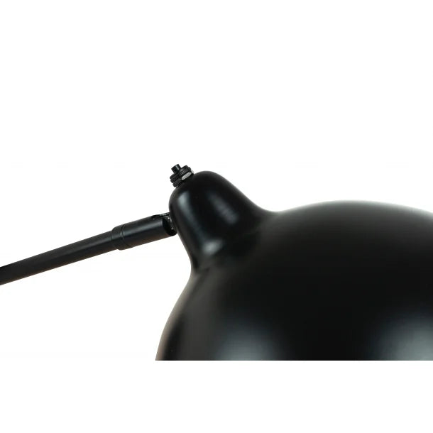 Lampen er lavet ud af metal og kontrasten mellem det sorte ydre og det hvide indre giver et minimalistisk look.