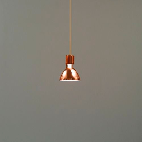 Fatning GY 6,35 12 volt Maksimum 20 watt Materialer Aluminium / Messing Farve(r) Messing ben - hvid / sort / grafitgrå spørg på pris for kobber og strøjslebet alu Højde 7,3 cm Diameter 6,3 cm Husk at vælge transformer ( evt. Haiko transformer ) en haiko transformeren kan godt forsyne to pendler.