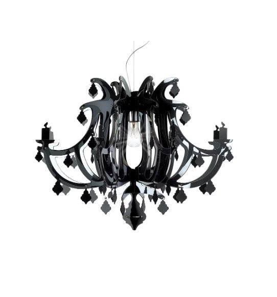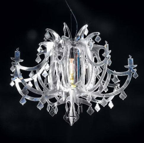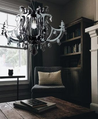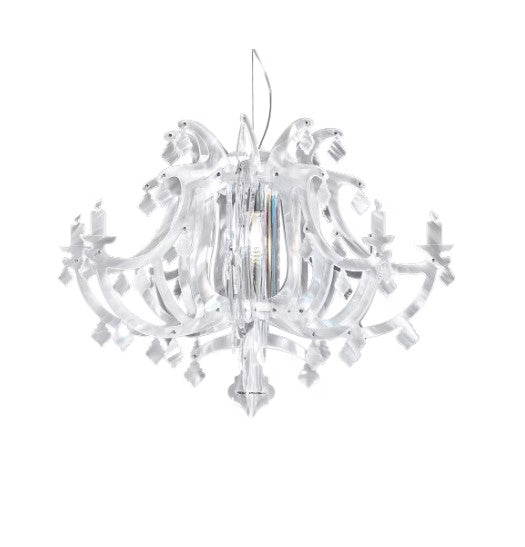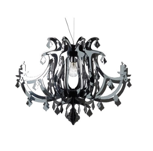 Lysekronen fås i 5 forskellige farver: Transparent, hvid, sort, sølv eller guld.