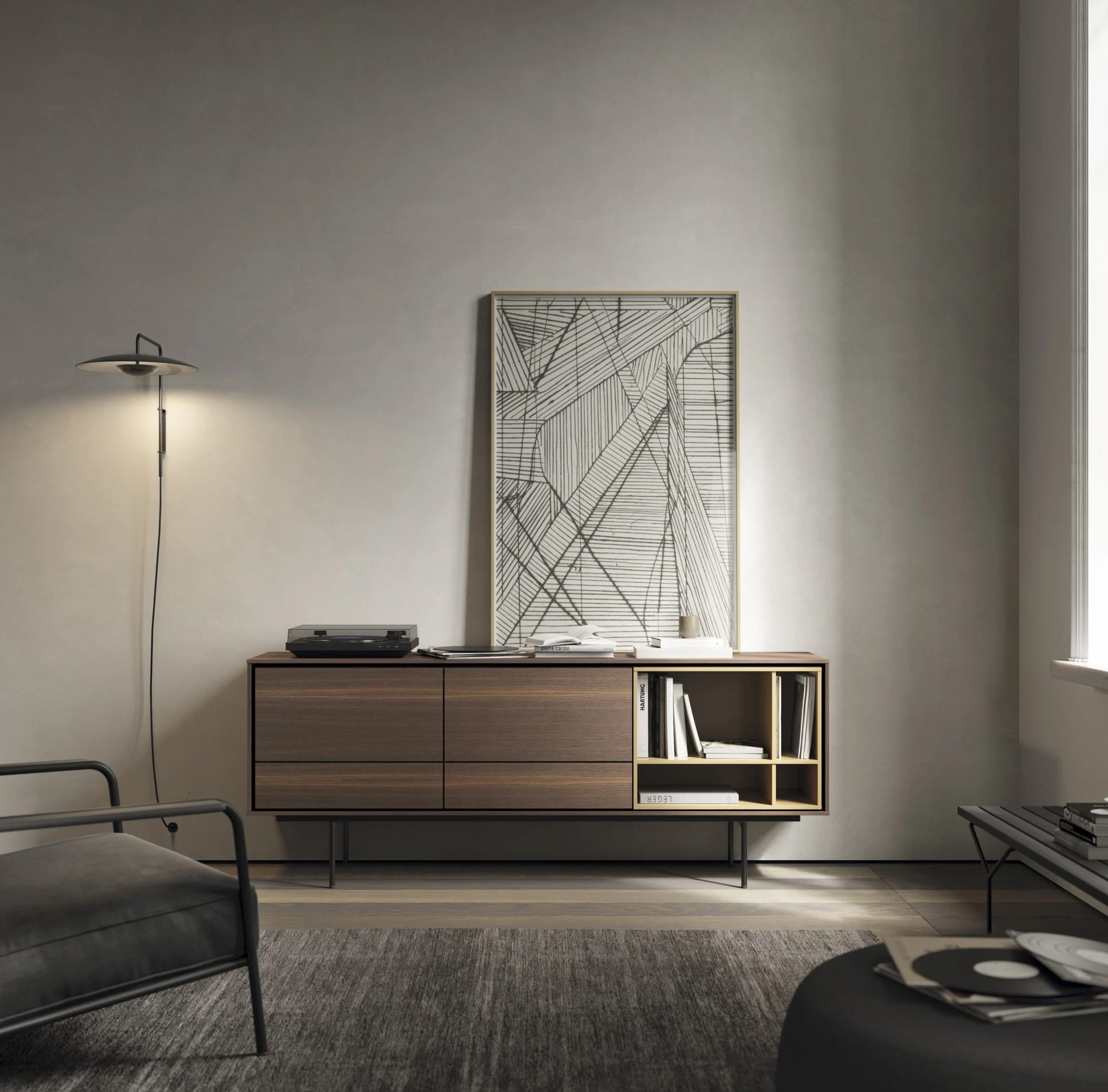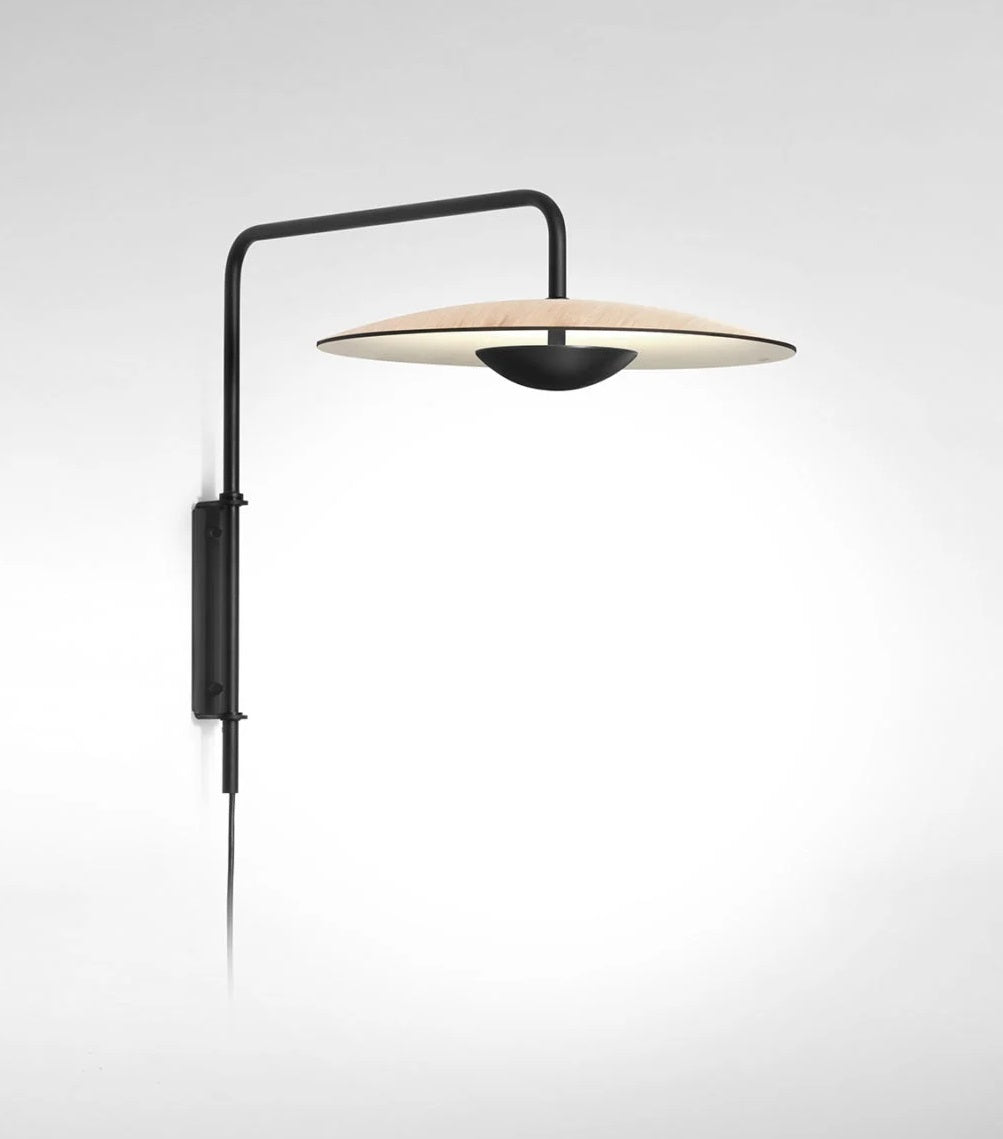 Lampen er udført i metal og har nogle forskellige overflader, lys eg, wenge, hvid og messing.