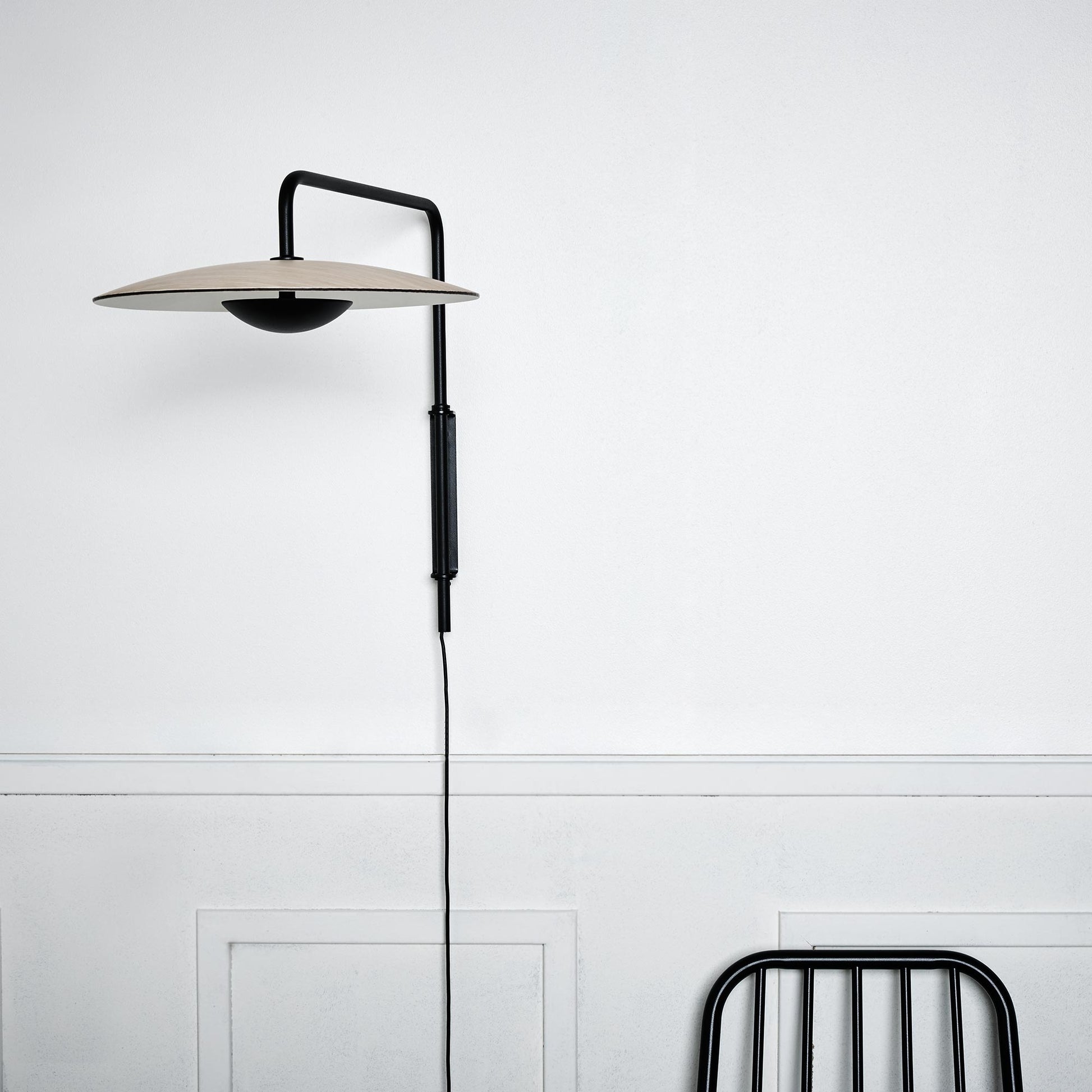 Lampen er udført i metal og har nogle forskellige overflader, lys eg, wenge, hvid og messing.