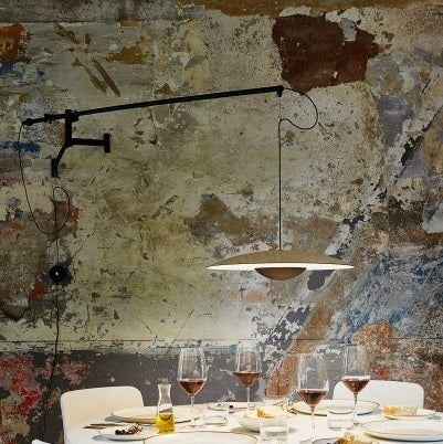 Ginger A XL Ø42 væglampe har en lang arm som kan skydes udfra 98,5 til 120 cm og skærmen som er Ø 42 cm kan hæve og sænkes fra 8/55 cm