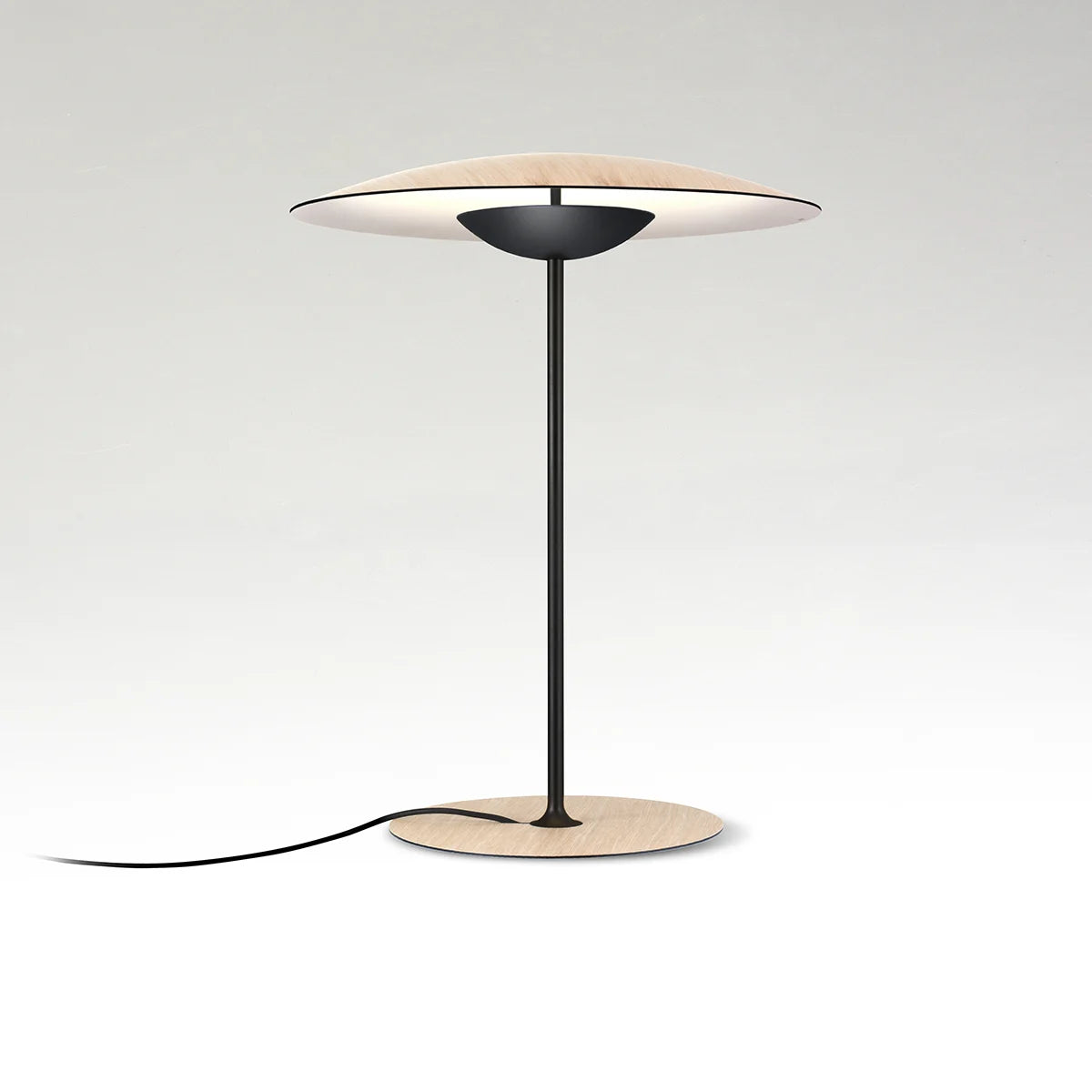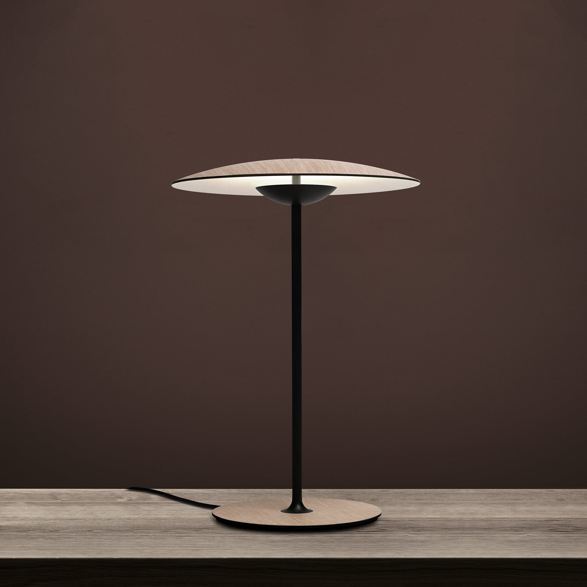 Lampen er udført i metal og har en træfinér overflade som kan fås i lys eg eller den mørke træsort, Wenge.