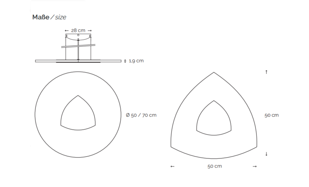 Diameter 50 cm, glas tykkelse 1,9 mm 3 x 4,9W 1740lm 2700K CRI90 dæmpbar 24 kg